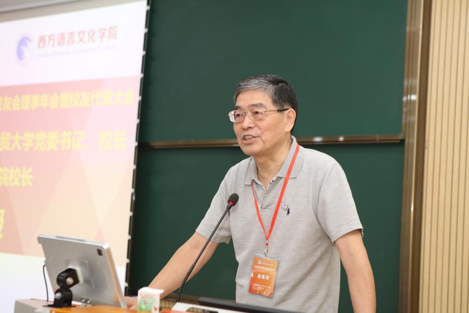 学院校友会顾问、原广东外语外贸大学党委书记、校长、现浙江越秀外国语学院校长徐真华引用法国作家名句阐述校友会的工作意义,他将校友会比作“生生不息的生命之河”,希望更多代表新生力量的新校友加入校友会,努力弘扬广外精神、西语风格;希望校友们走向社会后,不忘初心使命,寻找人生意义、创造生命价值;希望优秀校友更好的帮助一代代毕业生,搭建好桥梁纽带,将广外西语学院的优良传统传扬到世界各地。