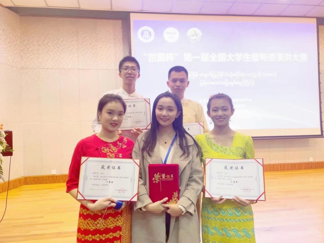 我校缅甸语自2014年招生以来,在学校领导的大力支持下,在专业教师的共同努力下,取得了长足的发展。为了此次比赛,全体老师以及外教陈彩美老师精心指导,学生经过长达四个月的赛前准备以及练习,首次参加全国性大赛就取得如此佳绩,展现了我校缅甸语专业的教学实力以及人才培养成效,是对我校缅甸语专业教学的肯定以及认可。