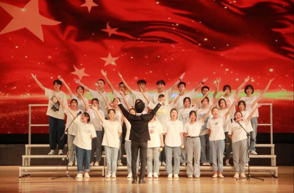 来自商学院2021级的15个班级在学校朋辈导师的积极鼓励和艺术学院学生艺术专业指导下,结合朗诵、舞蹈等多样形式,饱含深情地演唱《不忘初心》《我和我的祖国》《歌唱祖国》等经典红色曲目,在温柔朴实的歌词中感受党和人民的伟大精神与成就,在经典旋律中凝聚中华儿女对祖国的豪情与自信。歌声雄厚有力,唱出了满满的爱国情怀,充分表达了商院学子对伟大祖国的深深依恋和真诚歌颂。