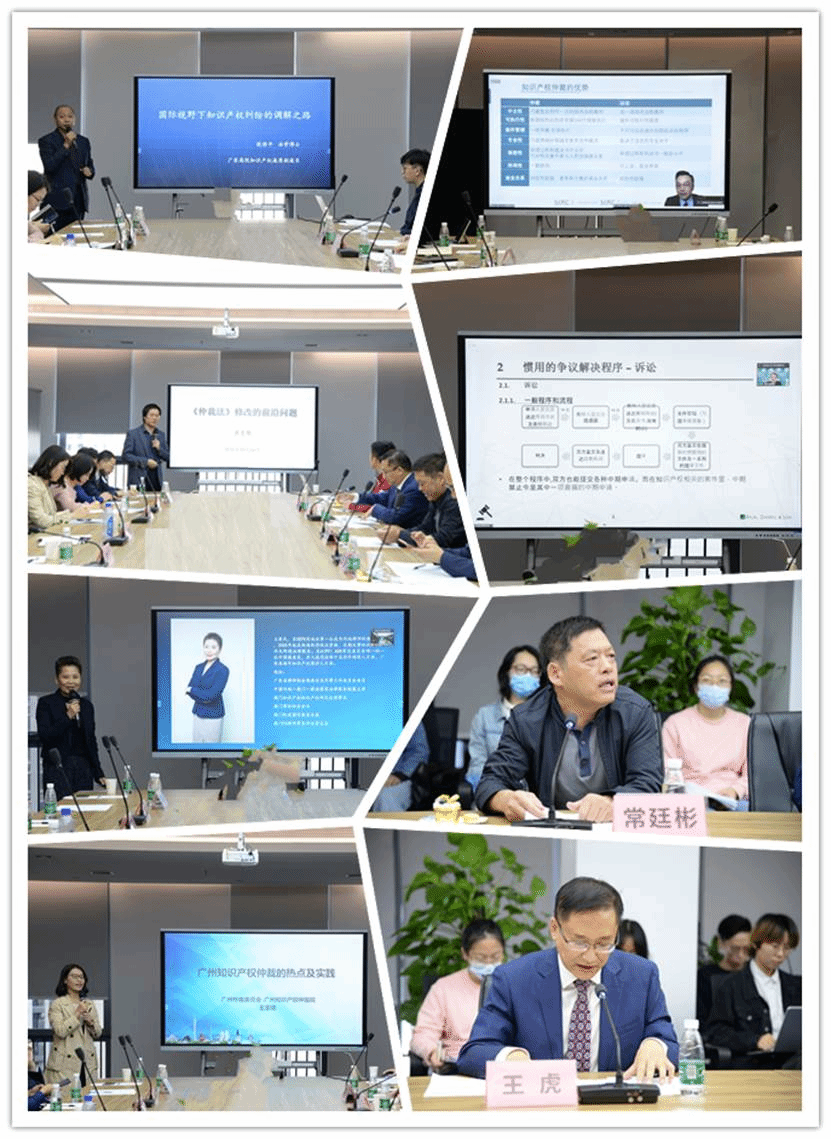 在主旨发言环节,来自国内外知识产权争议领域权威顶级专家和资深专业学者围绕“知识产权仲裁与调解”主题,分享最新前沿研究成果,解读时代性代表性热点案例。欧修平介绍了国际视野下知识产权的纠纷调解总原则、面临的共性问题及具体方法。华南理工大学法学院教授黄忠顺就仲裁法的修改问题进行介绍;新加坡国际仲裁中心中国区首席代表张寸渊介绍新加坡知识产权仲裁的发展情况,并展示了新加坡国际仲裁中心在解决知识产权纠纷争议方面的优势;RAJA,DARRYL & LOH律师事务所合伙人秦汉凌介绍了马来西亚知识产权仲裁与纠纷解决机制及其特点;澳门凯旋国际集团总经理、粤港澳大湾区知识产权调解中心首席调解员王爱民就粤港澳大湾区知识产权调解实务进行介绍;广州知识产权仲裁院业务副总监王亚倩介绍了广州知识产权仲裁院的基本情况和后疫情时代下知识产权纠纷解决新路径。常廷彬作为与谈人与参会代表就仲裁、调解与诉讼等纠纷解决机制作了简要概述。