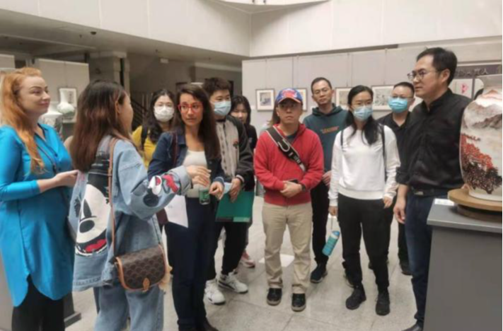 活动第一部分为参观艺术学院主办的以“瓷系初心,筑梦前行”为主题的陶瓷展。在艺术学院教授杜鹏的生动讲解中,外教们纷纷表示通过一件件精美的艺术作品感受到了中华传统文化的魅力所在。杜鹏还为大家详细讲解了陶瓷的制作过程,指导外籍教师们亲身体验陶瓷彩绘。外教们积极参与,精心创作,用国际化的方式呈现中国传统文化的特色。