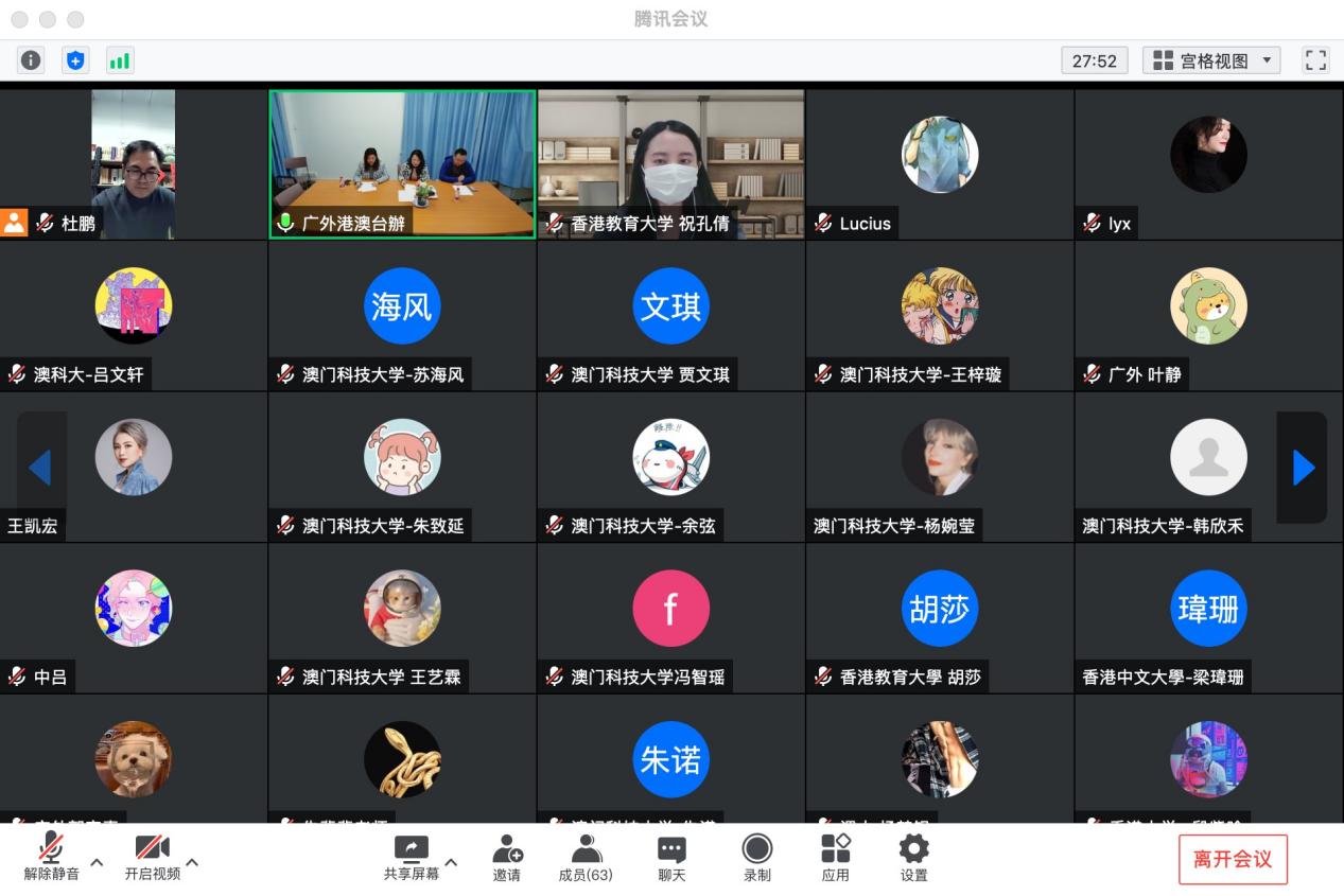 在开班仪式上,我校港澳台事务办公室主任柯晓华致辞,她提到,广外作为一所具有鲜明国际化特色的广东省属重点大学,与港澳地区的多所高校建立了密切的合作关系,并努力探索湾区高等教育协同发展及协同育人新模式。广外着力打造湾区“移动校园”、湾区名师讲坛、“万人计划”等项目,全面丰富湾区校园内涵,为三地学子提供学习交流机会。截止目前,广外湾区校园项目及“万人计划”项目已惠及三地1300多名在校学生。同时,柯晓华寄语三地同学,学习精益求精的工匠精神,提升审美能力及艺术创造力,全面提升自己的综合素质和能力。