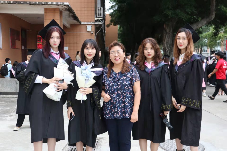 古人云:“亲其师而信其道”。对学生们来说,石楿老师不仅是恩师,更似一位“慈母”。她和学生一起去吃韩国料理,分享饮食文化和礼仪;和学生一起爬白云山,倾听学生的忧愁烦恼。从教多年,她将文化学习的快乐和人生的智慧,毫无保留地传递给一届又一届的学生。她的言语之间提及最多的就是她的学生,眼里满是温柔和关爱。“对我来说,我的学生都是纯洁、善良、非常可爱的孩子。看到孩子们成长成才,是我最大的骄傲,相比而言,我的付出微不足道。”这是石楿在广外最大的收获和感慨。她总是捧着一颗真诚之心去对待学生,怀揣关爱之责和学生聊天相处,面对所有赞誉不矜不伐。