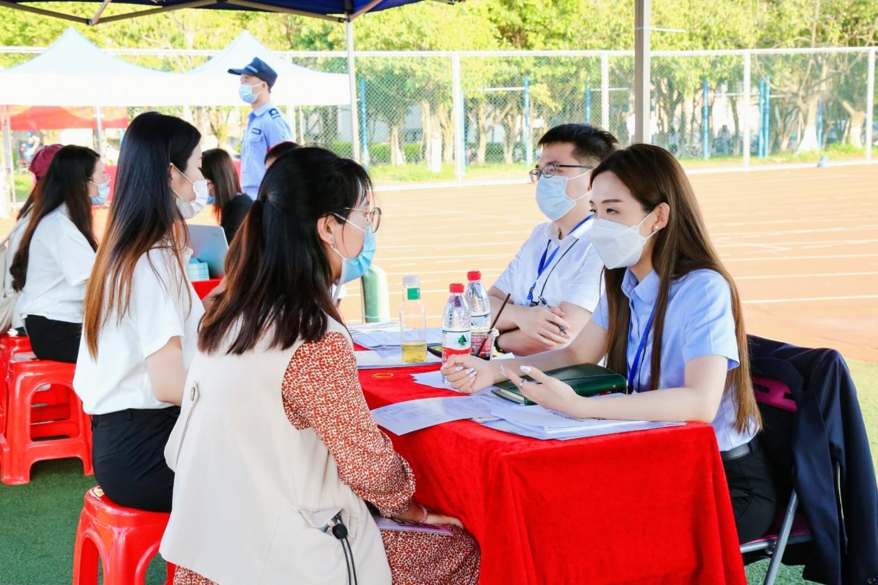 本网讯 近日,2022年广东外语外贸大学国有企业专场招聘会在我校南校区人造草田径场举行。本次招聘会由我校联合广州人才集团举办,吸引了中交广州航道局、建发集团、广药集团、广州轻工集团、中化广东等60家国有企业到场揽才,提供1776个就业岗位,涵盖房产建筑、IT互联网、教育、金融、服务业等类别。