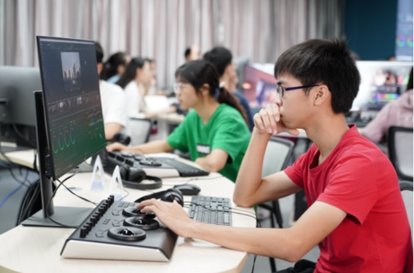 工作室学生在实验室完成短视频后期制作项目