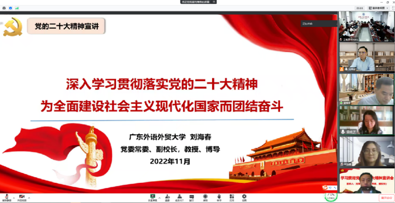 本网讯 11月24日,马克思主义学院召开学习贯彻党的二十大精神宣讲会,校党委常委、副校长刘海春作宣讲报告。宣讲会以线上线下相结合的方式召开,由马克思主义学院党委书记麦培年主持,马克思主义学院师生104人参会。