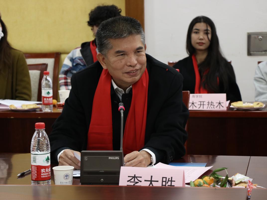 李大胜充分肯定我校新疆籍学生教育管理工作,并强调学校要不断优化新疆籍学生教育管理服务工作,持续深化爱国主义教育和中华民族共同体意识教育,让中华民族共同体意识根植学生心灵深处。希望老师们不忘立德树人初心,提升教书育人本领,加强对学生政治引领和思想引导,培养好社会主义合格建设者和可靠接班人;勉励同学们牢记习近平总书记殷殷重托,深入学习体悟党的二十大精神,坚定不移听党话、跟党走,认真学习党的创新理论,做习近平新时代中国特色社会主义思想的坚定信仰者和忠实实践者;铸牢中华民族共同体意识,做祖国统一和民族团结的忠诚捍卫者和坚定维护者;以奋斗姿态激扬青春,做走在时代前列的奋进者、开拓者、奉献者。