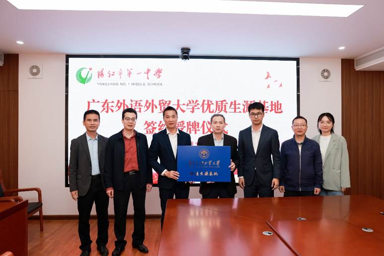 本网讯 2月24日上午,我校与国家级示范普通高中阳江市第一中学共建优质生源基地签约和授牌仪式在阳江市第一中学举行。阳江市第一中学校长梁峻荣、副校长卢南山,我校法学院相关负责人及校友代表出席了签约授牌仪式。