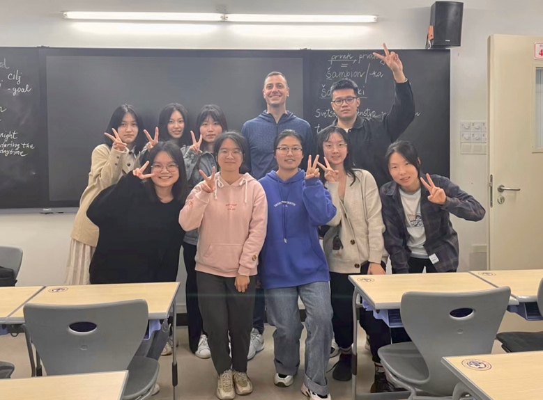 在广外的五年期间,西方语言文化学院塞尔维亚语系外教陶安(NemanjaGlintic)感受着自己的成长,也见证了“一带一路”倡议的走深走实。在来华之前,陶安曾在塞尔维亚从事教学工作,但在广外的工作使他更强烈地感受到这份职业赋予他的责任。他称自己是中塞文化交流合作中的一颗“螺丝钉”:耕耘讲台时,他不仅代表他自己,也代表着他的祖国;教书育人,不仅是传授语言知识和技能,更是在向学生们分享祖国文化,在有关文化、态度、价值观的探讨中促进文明互鉴。同时,他也很高兴地见证着学生前往塞尔维亚留学、用塞尔维亚语就业,以自身行动为中塞双边友好合作添砖加瓦。