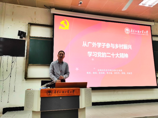 勇担青年使命,凝聚青春力量。宣讲团成员魏煊、崔家惠、徐奕琳等以“从广外学子参与乡村振兴学习党的二十大精神”为题,在日语学院、英文学院学生中开展宣讲。围绕党的二十大报告中关于巩固拓展脱贫攻坚成果、推进乡村振兴作出的重要论述,结合我校的具体情况,向学生展示了我校近年来积极组织师生团队投身参与乡村振兴等典型案例,鼓励学生更加积极地贯彻落实党的二十大精神,更加主动地投入到乡村振兴工作,讲好中国故事,讲好中国乡村振兴的故事。