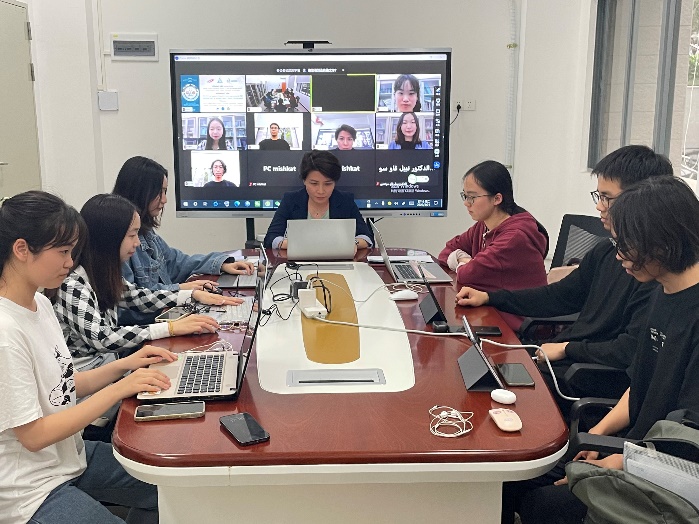 我校阿语系师生就“中国阿拉伯语教育的现状与困难”议题展开讨论。阿语系教师劳凌玲指出,希望未来双方在教学科研、文化交流和培训等领域开展更多合作,促进中阿友好往来。会上,不少学生表示,作为阿拉伯语学习者,应该在专业水平上不断精进,发挥连接中阿双方的桥梁作用,为促进双方人文交流做出年轻阿语人的贡献。