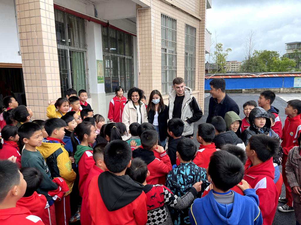 我校外国留学生与桂头镇小学生互动