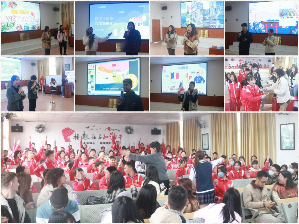来自厄瓜多尔、法国、马里、孟加拉国、日本、泰国、委内瑞拉、印度尼西亚和越南9个国家的留学生在外国留学生移动小课堂开讲,为桂头镇中心小学的孩子们介绍自己国家的文化、风景、美食、节日等风土人情、异域文化。越南的春卷、泰国的问候方式、日本的动漫、厄瓜多尔的“世界之中”、印度尼西亚的服饰、法国的面包、马里的古城、委内瑞拉的传统舞蹈无不引起孩子们的极大兴趣和热烈反响。留学们还带来本国特色零食、玩具、装饰品等小礼物送给孩子们。