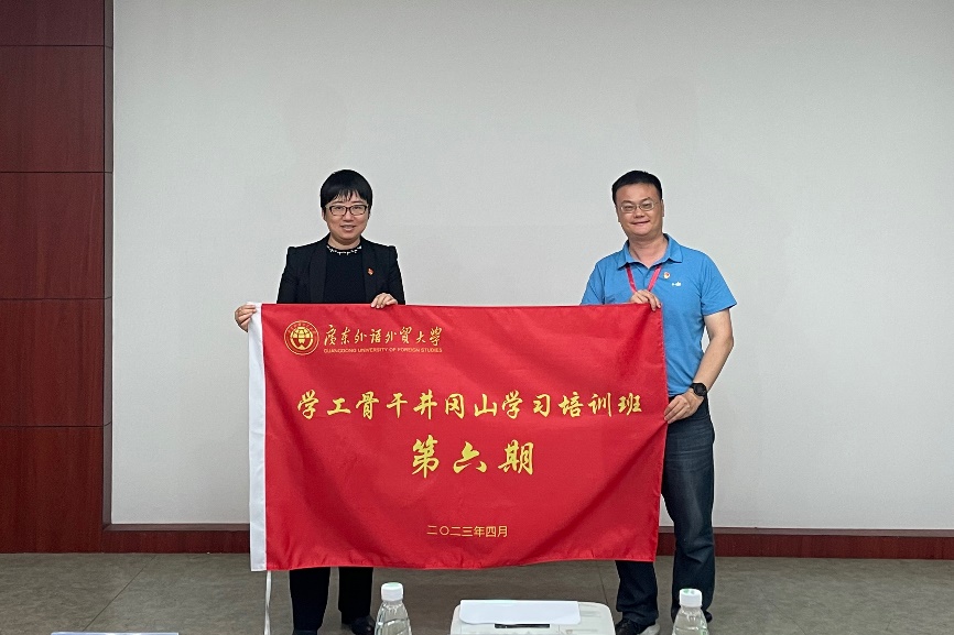 学生工作部部长国佳出席培训班行前动员大会,为培训班授旗并作动员讲话。国佳指出,井冈山学习培训是学工系统的传统培训项目,是一个集中学习交流、沉浸式体验教育的机会。她希望学工骨干珍惜学习培训机会,并提出了三点希望:第一,将主题教育活动、学习党的二十大精神和“为党育人、为国育才”工作与学习培训相结合;第二,在学习培训中注重学习以伟大建党精神为源头的中国共产党人精神谱系,学习党的工作方式方法,学习开展沉浸式党史学习教育的思政工作方法;第三,要建设一个团结奋进的学工团队,展现广外学工人良好的精神风貌。