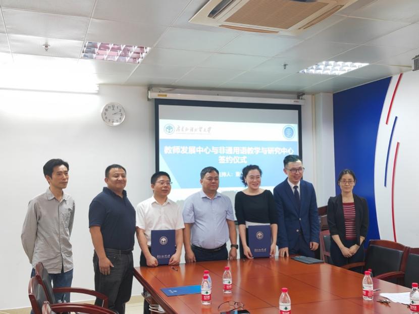 本网讯 5月11日,我校教师发展中心与非通用语种教学与研究中心签署共建非通用语种青年教师成长发展中心合作协议。签约仪式在白云山校区举行。该协议旨在提升非通用语种教学与科研水平,促进教师职业发展,推动相关专业建设,更好地服务于“一带一路”倡议。根据协议,双方将密切合作,陆续举办科研工作坊、学术论坛、学术沙龙等系列活动。
