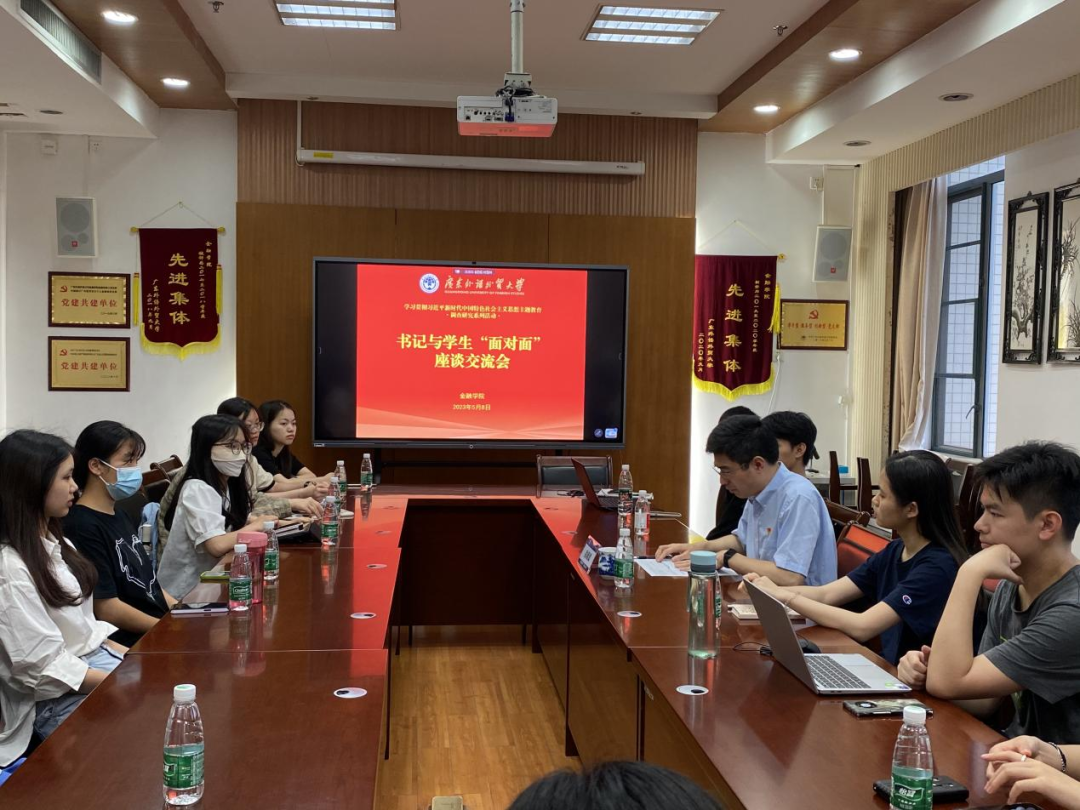 又讯 为扎实推进主题教育,5月8日,金融学院在大学城校区院系楼401会议室举办“院长书记与学生‘面对面’”座谈会。学院党委书记徐昶斌与各年级学生代表亲切交流,用心倾听学生代表们的真实心声,一起深入研究新情况、解决新问题、总结新经验、探索新规律,为推动学院下一步工作掌握一手情况。