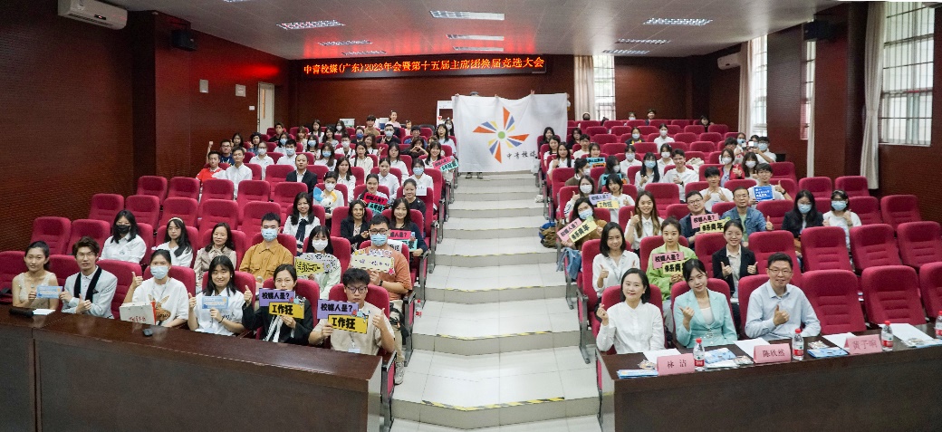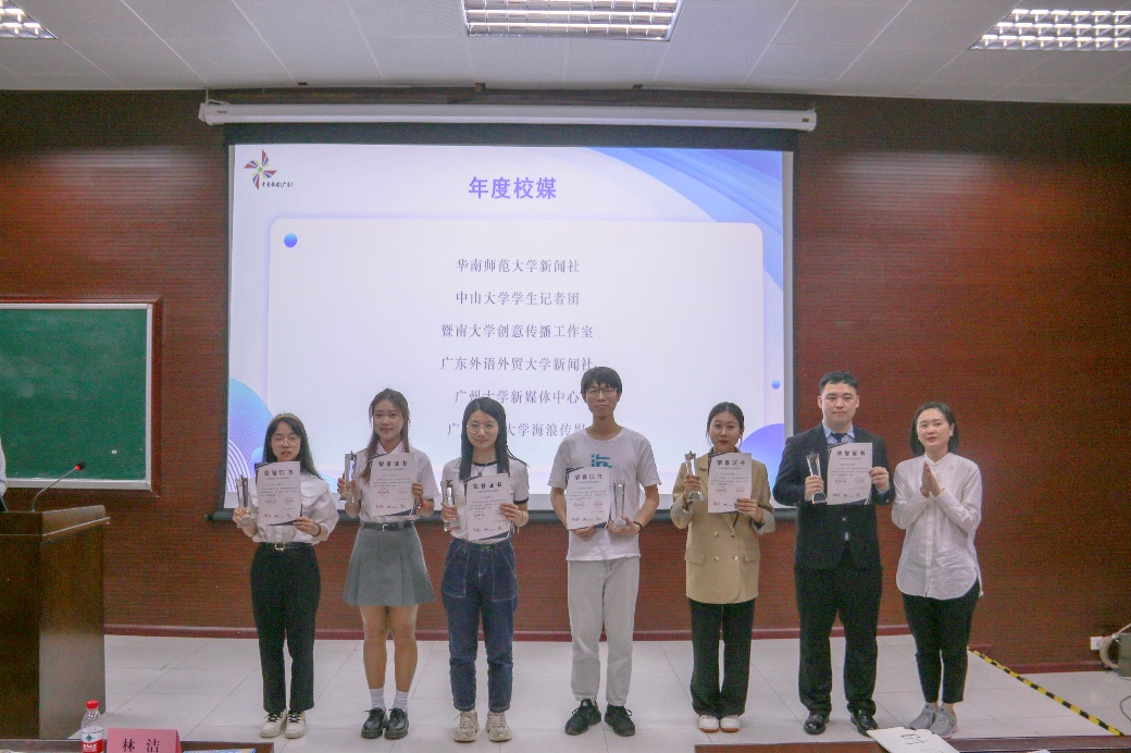 本网讯 5月14日,中青校媒(广东)2023年会暨第十五届主席团换届竞选大会在华南师范大学石牌校园举行。广东省第十二届“年度校媒”巡展最终阶段15家入围校媒汇报展示,我校新闻社表现突出,获“年度校园媒体”称号。周喆、张甜甜两位老师获评“优秀指导老师”。活动由共青团广东省委员会、中国青年报社广东记者站指导,中青校媒(广东)主办。