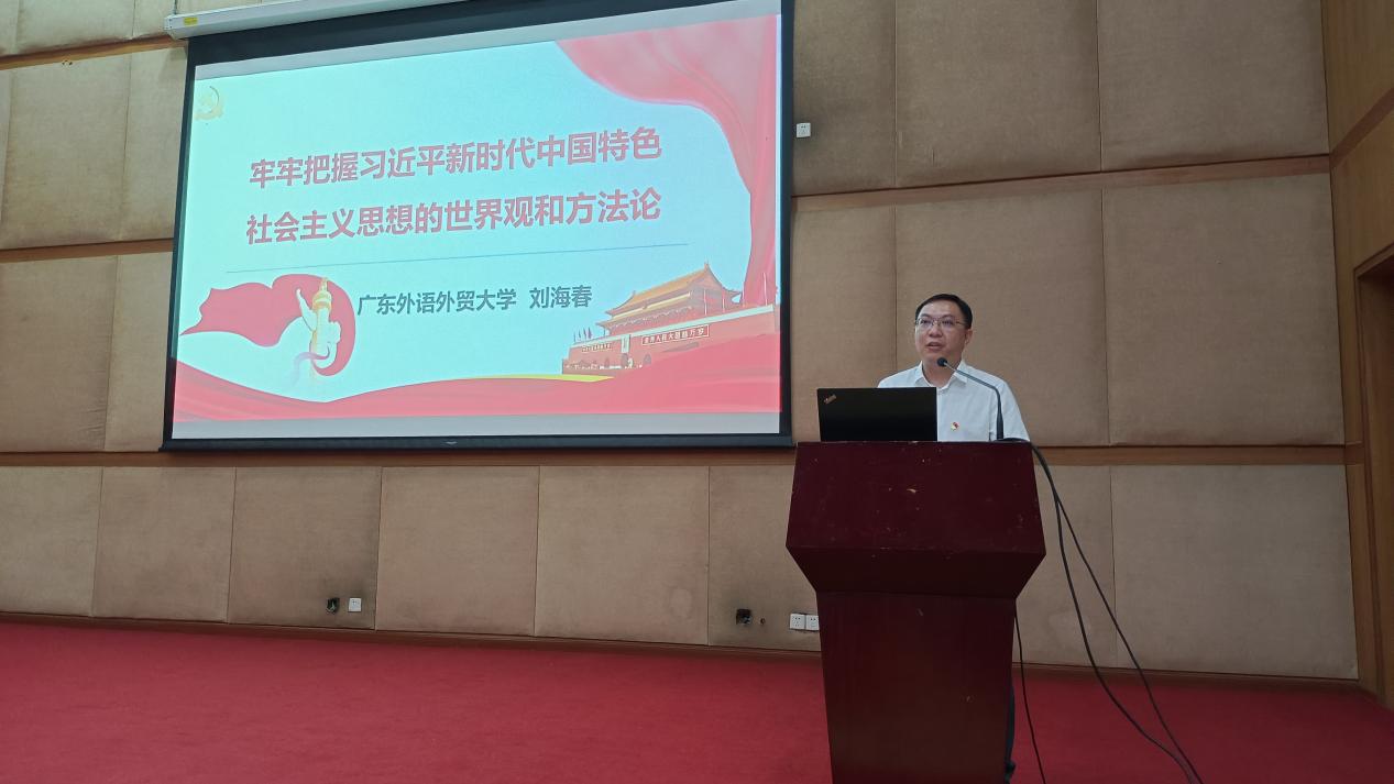 本网讯 近日,校党委常委、副校长刘海春作题为“牢牢把握习近平新时代中国特色社会主义思想的世界观和方法论”专题党课,公管学院党委领导班子、全体师生党员等约270人参加学习。