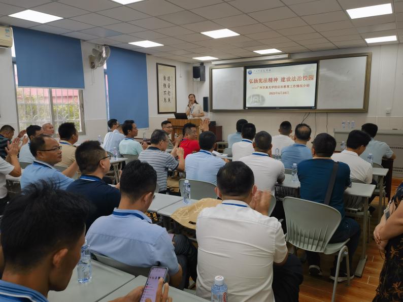 全体学员实地参观了广东广雅中学、广州市真光学校。两所学校均是百年名校,在法治教育和德育教育方面均有着鲜明的特色和深厚的底蕴。学员们观看了两所学校的法治教育专题片,广东广雅中学副校长陈一鸣、广州市真光学校教务处主任陈笑参介绍了各自学校法治教育工作开展情况。