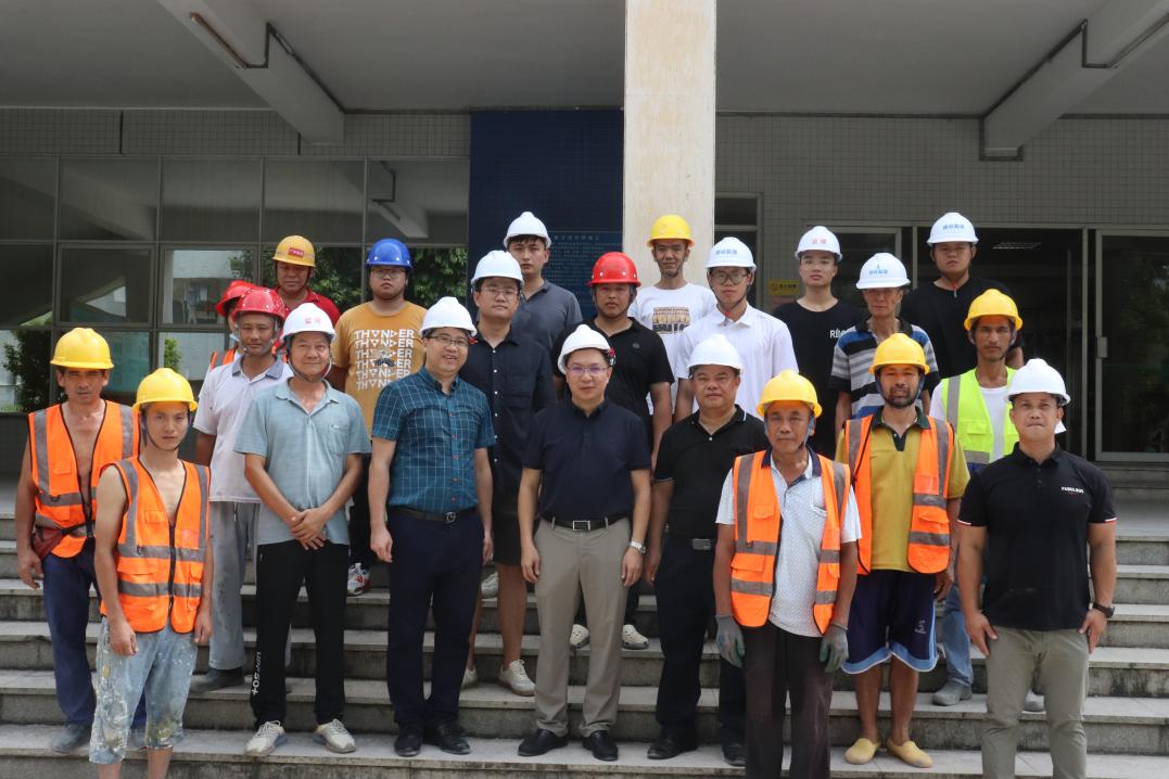 本网讯 高温酷暑,热浪袭人。学校利用暑期加快推进系列基建和修缮项目建设,力求实现校园基本建设的高质量发展。8月2日,副校长刘海春来到基建项目工地现场,看望和慰问在高温下辛勤工作的一线员工,为他们送去防暑降温饮品。基础建设部、总务后勤部等部门负责人参加慰问活动。