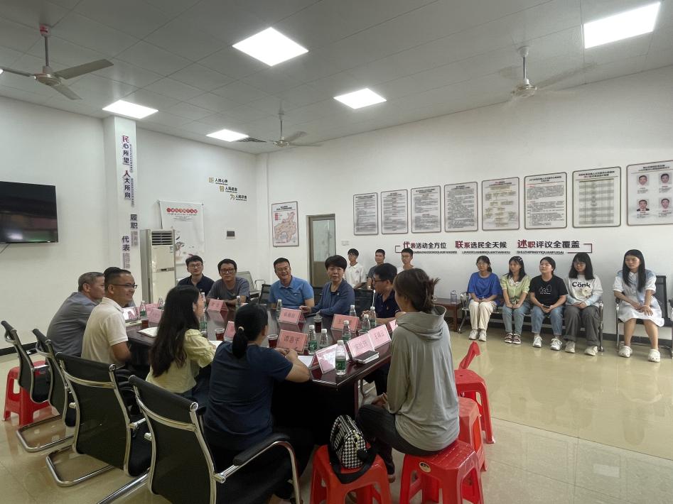 更合镇党政办主任文武、党建办主任陈梅云、合水社区书记谭惠平,我校国关学院党委书记袁薇佳、教师党员代表以及佛山暑期社会实践队员代表参加本次活动。文武介绍了更合镇经济、文化、历史、生态等相关情况,陈梅云指出了目前当地在儿童托管、老年人服务、空心村管理等方面存在的问题。袁薇佳和陈健分别介绍了广外和国关学院的学科专业优势和人才培养特色亮点,希望双方能够加强沟通合作,共同助力当地人才培养、社会服务、乡村振兴和文化传承。