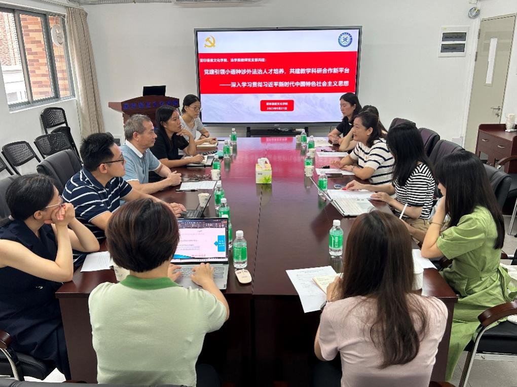 法学院第三教师党支部书记殷峻、亚非学院教师党支部书记易超分享了本支部党建引领与业务双融双促的工作情况。参加活动的教师们结合自身的教学科研及社会服务经历,探讨了“小语种+法学”涉外法治人才培养中的重点难点、现实挑战、未来机遇、培养方式等方面的问题,彼此加深了学科间、部门间的了解与认识,表示将抓住机遇、奋发有为,为“小语种+法学”涉外法治人才培养添砖加瓦。