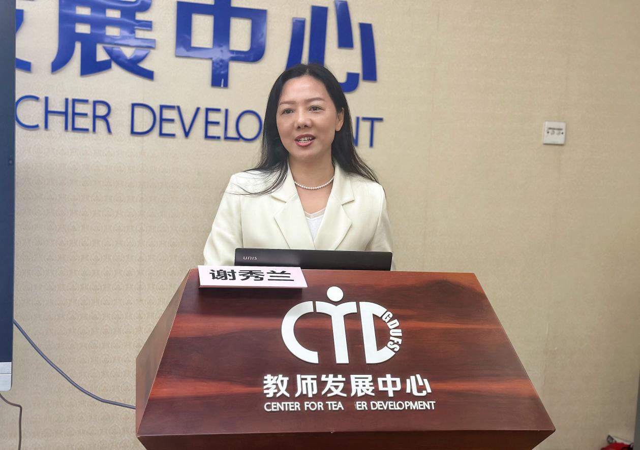 “管理人员行政能力提升”专题中,中文学院党委书记谢秀兰以“高校青年干部行政能力:认知与提升”为题,主要从行政管理特点、高校青年干部行政胜任素质、高校青年干部领导力提升路径和案例分析四大方面展开分享,并给学员讲解了《中共广东外语外贸大学委员会会议议事规则》、《广东外语外贸大学校长办公会议议事规则》的主要内容。