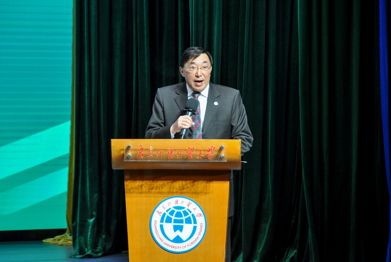 比赛伊始,学校党委副书记李云明、中国对外贸易企业合作协会商务英语工作委员会会长王立非分别致辞。李云明表示,“外研社杯”全国商务英语实践大赛作为专业学术交流平台,既检验了本科教育教学成果,同时又培养了学生的实践能力和社会责任感;强调了“绿色经济,无限商机”这一具有鲜明时代特征的主题对企业将绿色经济理念与商务实践相结合,为社会创造更大财富的重要性与必要性。王立非表示本次商务英语实践大赛为选手们展示自我英语能力和商务知识提供了一个良好的平台,就本次大赛的主题表达了在未来建立绿色可持续发展的全球经济的热切期盼与祝愿。