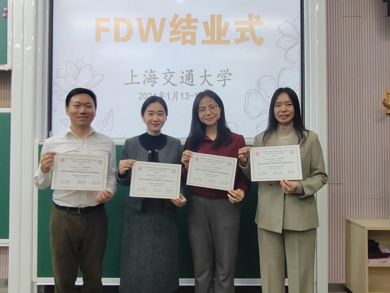 本网讯 为探索教师教学技能提升的全新培训模式,搭建高质量、系统化的教师发展体系,引领青年教师掌握先进教育理念,提升教学技能与教学质量,我校教师教学培训专家首批国际认证团队于1月13日至16日参加了由加拿大ISW国际认证组织授权上海交通大学教学发展中心组织的FDW(Facilitator Development Workshop)教学技能引导员国际认证培训,并以最优档成绩通过国际认证。