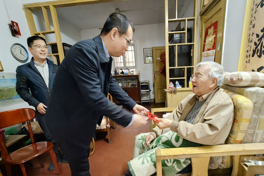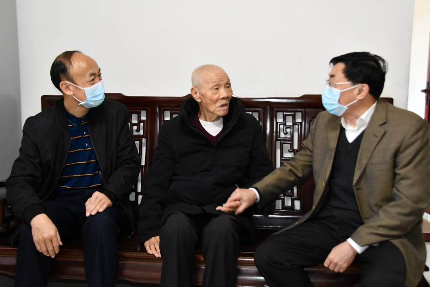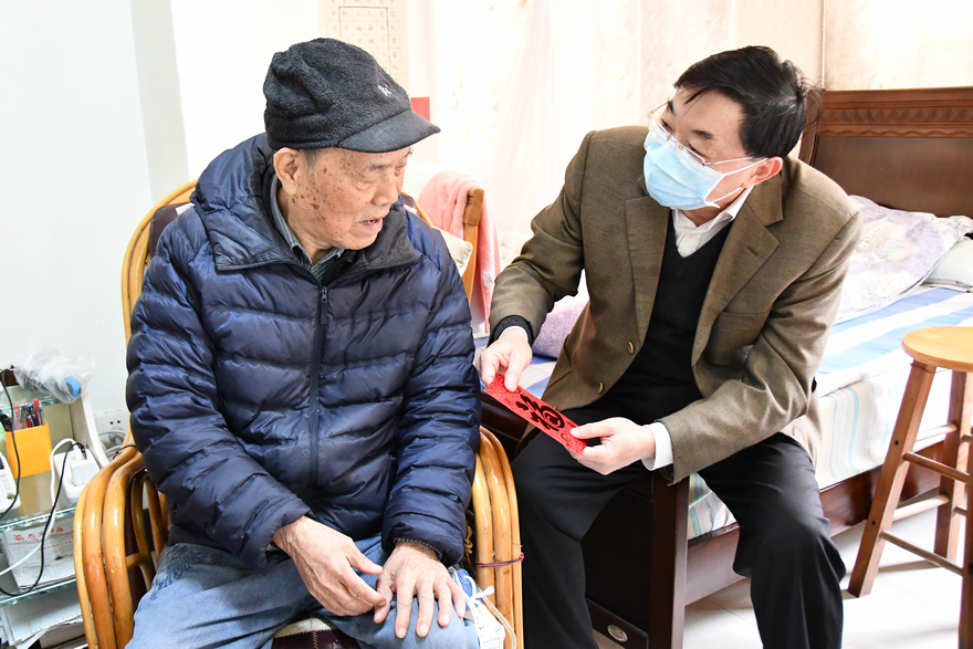 在慰问“五老”代表座谈会上,与会校领导与“五老”代表共话学校新发展,校党委书记石佑启代表学校向他们送上新春祝福与节日慰问金。