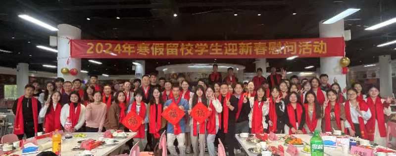 本网讯 2月4日上午,在龙年新春即将来临之际,学校在大学城校区组织开展2024年春节留校学生慰问活动。校党委副书记唐锐同留校学生欢聚一堂,共贺新春。