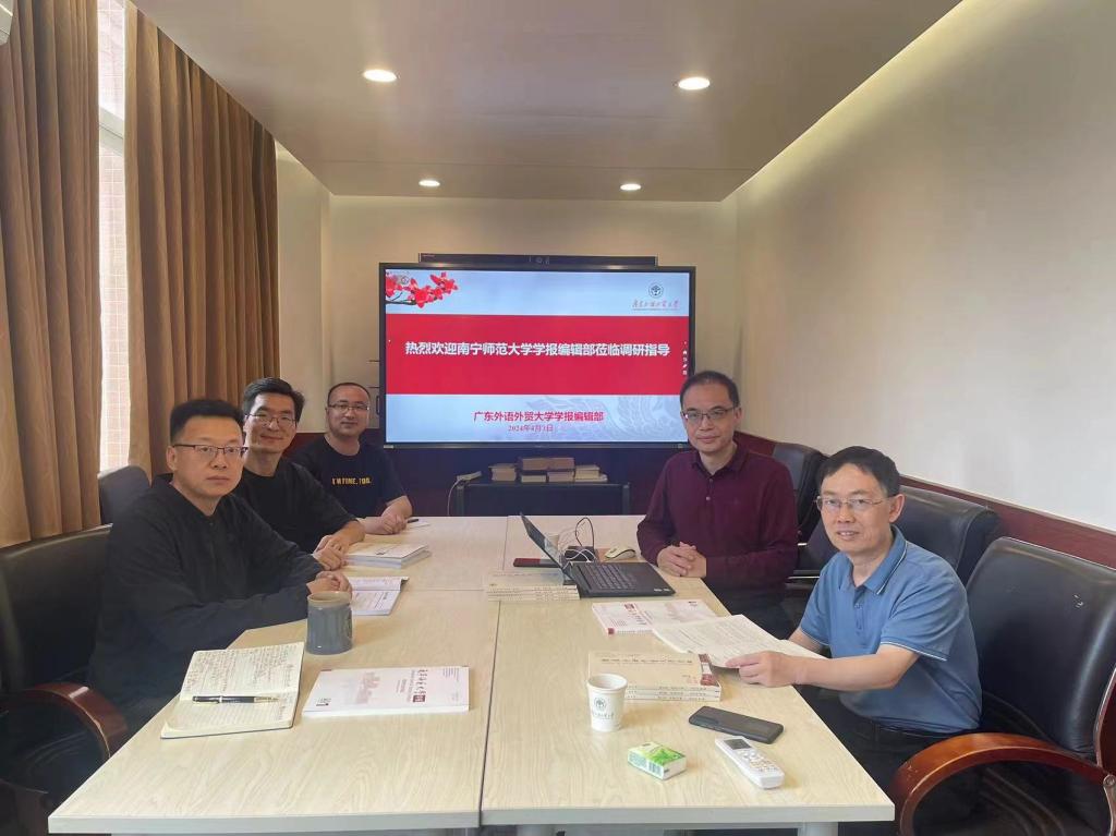 本网讯 4月3日上午,南宁师范大学学报编辑部主编张震英和编审刘兴禄到我校广外学报编辑部调研,广东外语外贸大学学报相关负责人及主要成员参加座谈会,会议在我校白云山校区科研楼四楼会议室举行。
