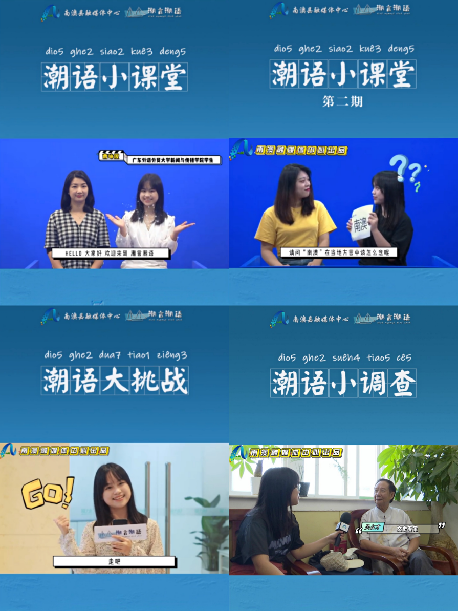 在汕尾市陆河县调研期间,为了帮助当地红色文化的传承,曹咏仪及其团队专门制作了关于赓续陆河县红色基因的宣传视频,并获得了第六届广东高校网络媒体展示节微视频作品类二等奖,为当地旅游业(红色旅游)的发展贡献力量。此外,在汕头市南澳县融媒体中心实习期间,曹咏仪及其团队就利用专业所学,创新推出了以推广潮语文化为主题的“潮言潮语”栏目,下设《潮语小课堂》《潮语大挑战》等不同形式的节目,在南澳县融媒体中心全平台都发表了相关作品,其中的两期节目更是被发布在了“学习强国”平台上,得到了南澳县融媒体中心及当地民众的一致好评。这些经历筑就了曹咏仪内心传承中华文化的责任感和使命感,也让她越发想要主动肩负起讲好中国故事的时代担当。