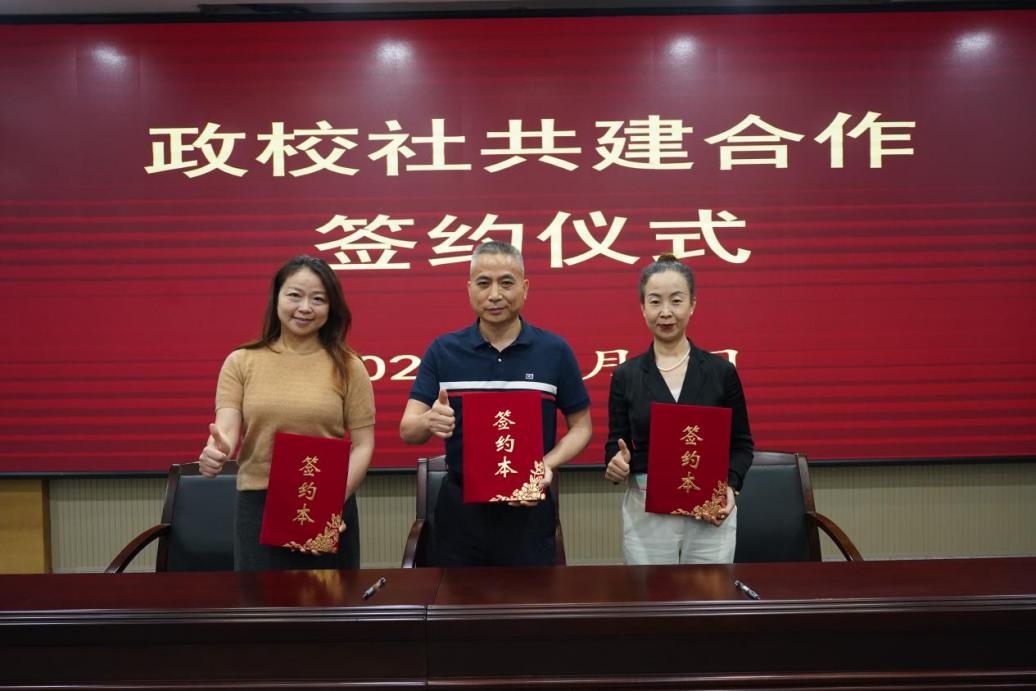 小谷围街道办事处、广东外语外贸大学社会与公共管理学院、广州市番禺区正阳社会工作服务中心三方代表共同签订了《广州市番禺区大学城政校社共建合作协议》。