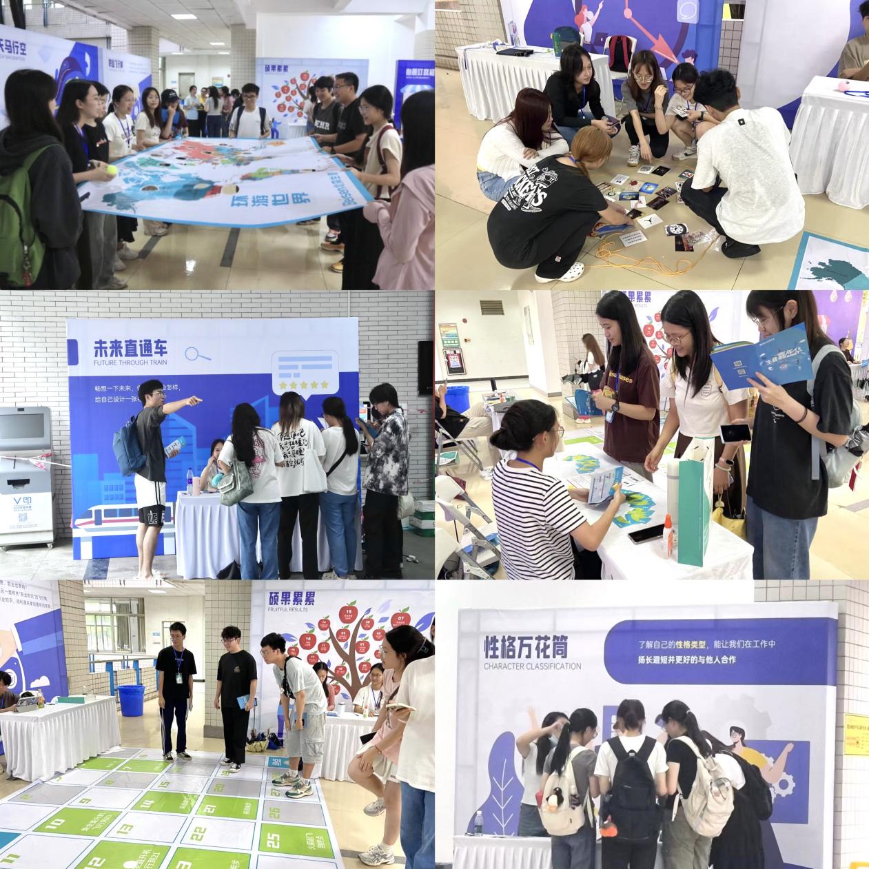 生涯体验周活动是以职业生涯规划为主题的国内新型户外游戏式体验活动,作为职业生涯规划教育的“第二课堂”,是课程教学的有益补充和实践延展。本次活动设置了“热身活动站”“职业探索站”“挖掘自我站”“头脑风暴站”和“未来规划站”五大区域,共有十三个趣味游戏,覆盖职业兴趣、性格、技能、价值观、职业探索等多个板块。活动期间,还设置了“职业生涯规划一对一辅导”的职业咨询台,为学生提供个性化咨询服务。同学们纷纷表示此次活动可以展示学习成果、加强团队协作精神,是深入思考个人未来发展方向的重要契机。现场活动结束后,每位参与现场活动的学生都将获得一份职业生涯诊断报告,通过“学生生涯大数据”,不断完善学生生涯档案。