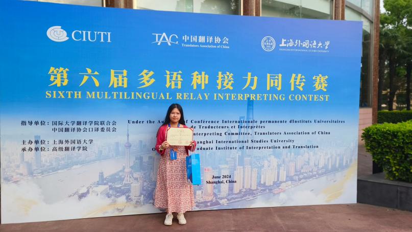 本网讯 近日,由中国翻译协会(TAC)口译委员会、国际大学翻译学院联合会(CIUTI)、上海外国语大学主办的第六届多语种接力同传赛总决赛圆满落幕。来自全球知名院校的128名选手参加了总决赛的角逐。我校日语口译研究生梁采怡同学历经初赛、复赛层层选拔,以熟练的翻译技巧、准确的词汇运用、沉稳从容的临场表现,展现了广外学子出色的专业技能,最终荣获本次大赛三等奖。