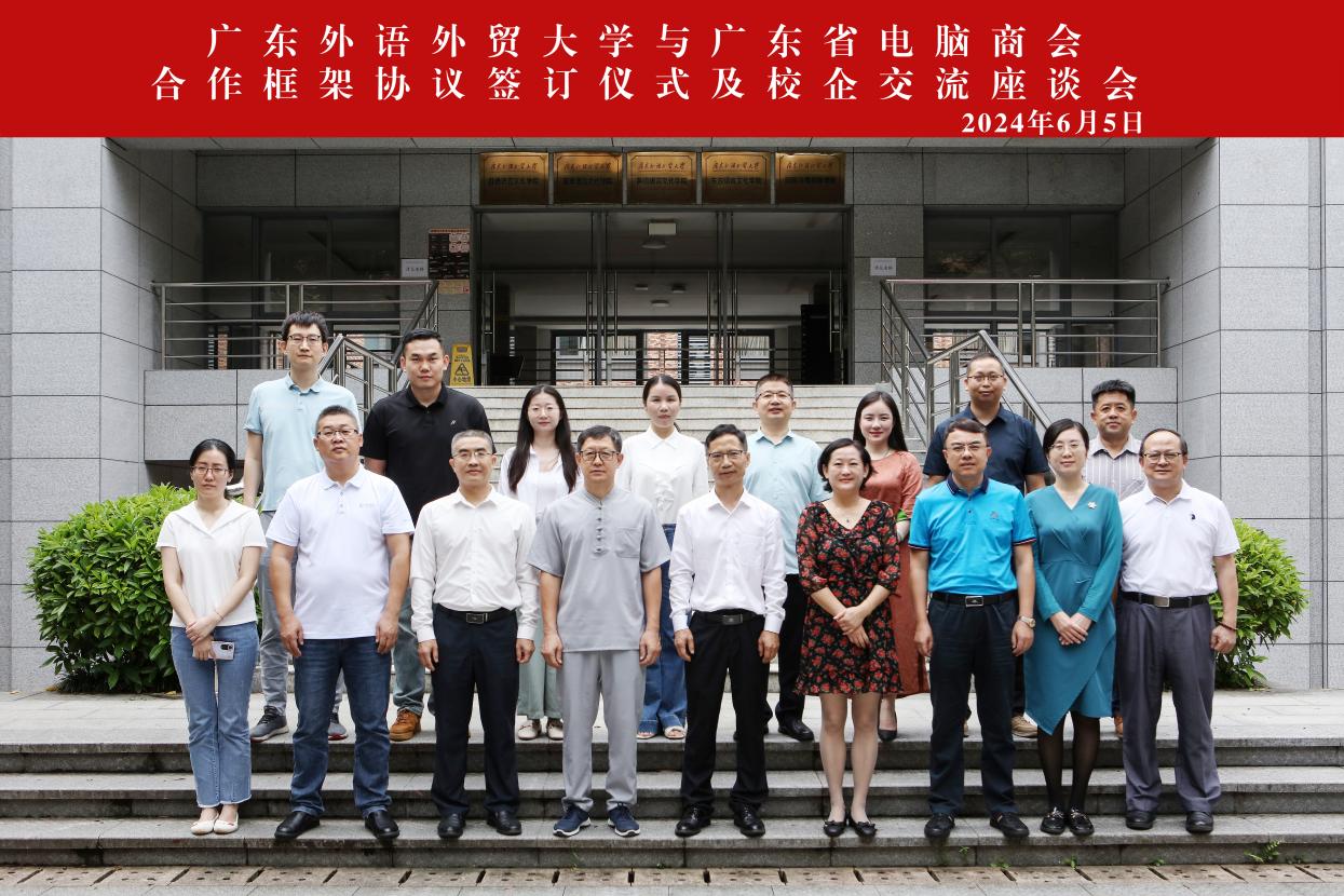 本网讯 6月5日,我校与广东省电脑商会合作框架协议签约仪式暨校企座谈会在白云山校区举行。广东省工商联第十二届常委、广东省电脑商会会长马本湘,商会副会长、广东中鑫华董事长熊昊,广州有鸣信息科技董事长陈玖,掌动智能执行总裁罗剑芳,商会秘书长彭曼及商会企业代表,亚非学院全体院领导及师生代表出席会议。亚非学院党委书记梁洁主持会议。