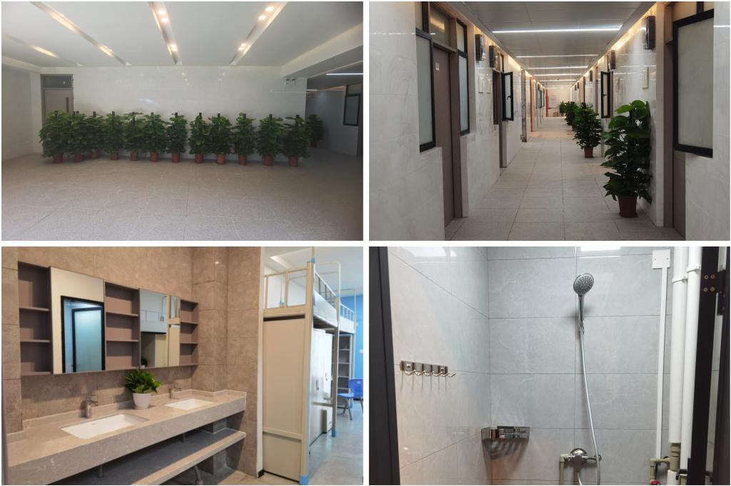 暑期实施的学生宿舍的项目不仅增加了学生床位、满足了校区调整的需要,且让学生宿舍从内到外焕然一新。为保障校区调整的学生顺利入住,基建部迅速响应,对白云山校区宿舍17栋与大学城校区宿舍1栋、13栋的173间宿舍进行翻新,提前交付使用,为紧张的校区调整工作争取了宝贵的时间。白云山校区学生宿舍20栋修缮项目将原财院第三饭堂改造成学生宿舍,调整内部布局、翻新外立面、更换门窗水电线路,为学校新增了64间宿舍,256个床位。宿舍7栋项目将48间学生宿舍由公共卫生间升级为独立卫生间和阳台,室内布置上床下桌。宿舍4栋项目则将1218个高而不便的高柜调整为触手可及的上床下桌。大学城学术交流中心项目新增了学生饭堂,将学术交流中心改造为学生宿舍,翻新了走廊等公共区域。校区友苑A、B栋修缮项目对383间宿舍内布局调整,走廊与宿舍室内墙面贴砖,卫生间修缮等。新的宿舍设施更齐全、环境更舒适、布局更合理、氛围更温馨。
