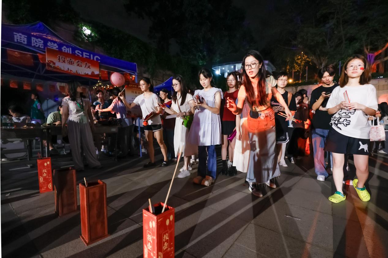 追古溯今,千载一瞬。中华优秀传统文化摊位,让广外师生穿越文明繁华。秦朝投壶、汉朝剪纸、唐朝诗歌酒令、宋朝点茶作画、清朝中国结等让师生徜徉在中华五千年文化之旅中。身着汉服唐装猜emoji里的历史,现场制作《红楼梦》中的玫瑰卤子气泡水与点心月光糕、晶莹剔透的糖画和冰糖葫芦,让师生纷纷感受到传统文化的生命力。雕刻细腻的佛山木版年画、精美绝伦的岭南押花艺术、奶香四溢的沙湾姜埋奶、活灵活现的大吴泥塑、妙趣横生的木偶戏体验精彩亮相,吸粉无数!