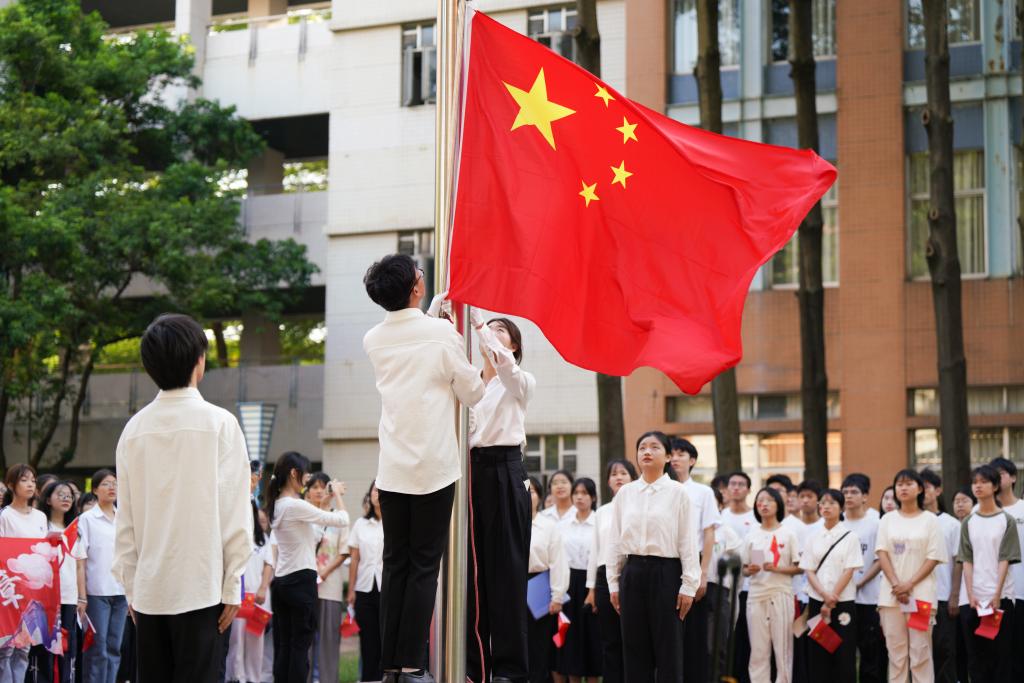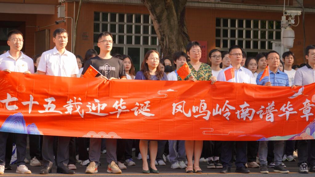 上午8时许,升旗仪式正式开始,师生齐聚升旗台前,共同见证这一庄严而神圣的时刻。伴着慷慨激昂的国歌声,五星红旗缓缓升起。