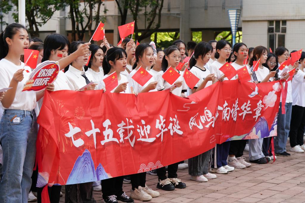 本网讯 10月1日,学校举行升国旗仪式,庆祝中华人民共和国成立75周年。500余名师生在白云山和大学城两个校区现场观礼升国旗仪式,师生们手摇国旗,齐唱国歌,向祖国致敬,向祖国75周岁生日送上最诚挚的祝福,祝福伟大的祖国繁荣昌盛。