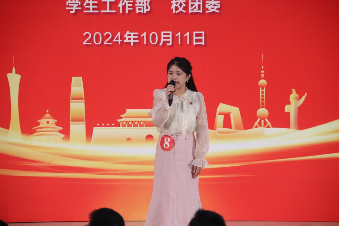 “‘礼赞新中国,共创新华章’,这不仅仅是一句口号,更是我们这一代青年大学生的共同心声。”中文学院谭秀薇同学表示,在备赛过程中,老师们的悉心指导、同学们的无私帮助,不断给予了她灵感和启发,“作为一名青年大学生,我将不断提升自己的理论素养,学思践悟,争做社会主义核心价值观的坚定信仰者、积极传播者、模范践行者。”