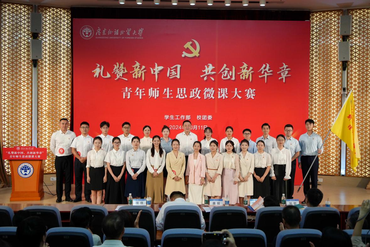 为了进一步整合青年师生的宣讲力量,加强理论武装,筑牢理想信念,汲取奋进力量,持续推动党的二十届三中全会精神落地生根、开花结果,大赛现场举行了广东外语外贸大学第二期新时代青年师生理论宣讲团成立仪式。宣讲团旨在围绕理论宣讲,推动习近平新时代中国特色社会主义思想入脑、入心、入行,做到学、思、用贯通,知、信、行统一,切实提升思政教学育人实效。