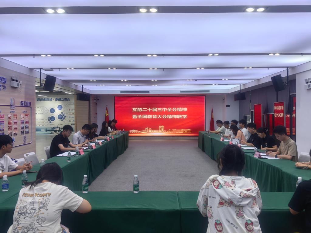 双方党支部成员就党的二十届三中全会精神和习近平总书记在全国教育大会上的重要讲话精神进行深入交流。创新创业教育中心党支部书记林路行表示党支部将持续引导学生创业团队树立正确的世界观、人生观和价值观。教育、科技、人才是中国式现代化的基础性、战略性支撑,鼓励学生积极投身到学习和实践中去,齐心协力贯彻新发展理念,为中国式现代化建设贡献自己的青春力量。党支部成员郭哲宇结合金桥团队社会实践的经验,分享自己对党的二十届三中全会精神的理解。与会双方各抒己见,相互吸收,共同学习。