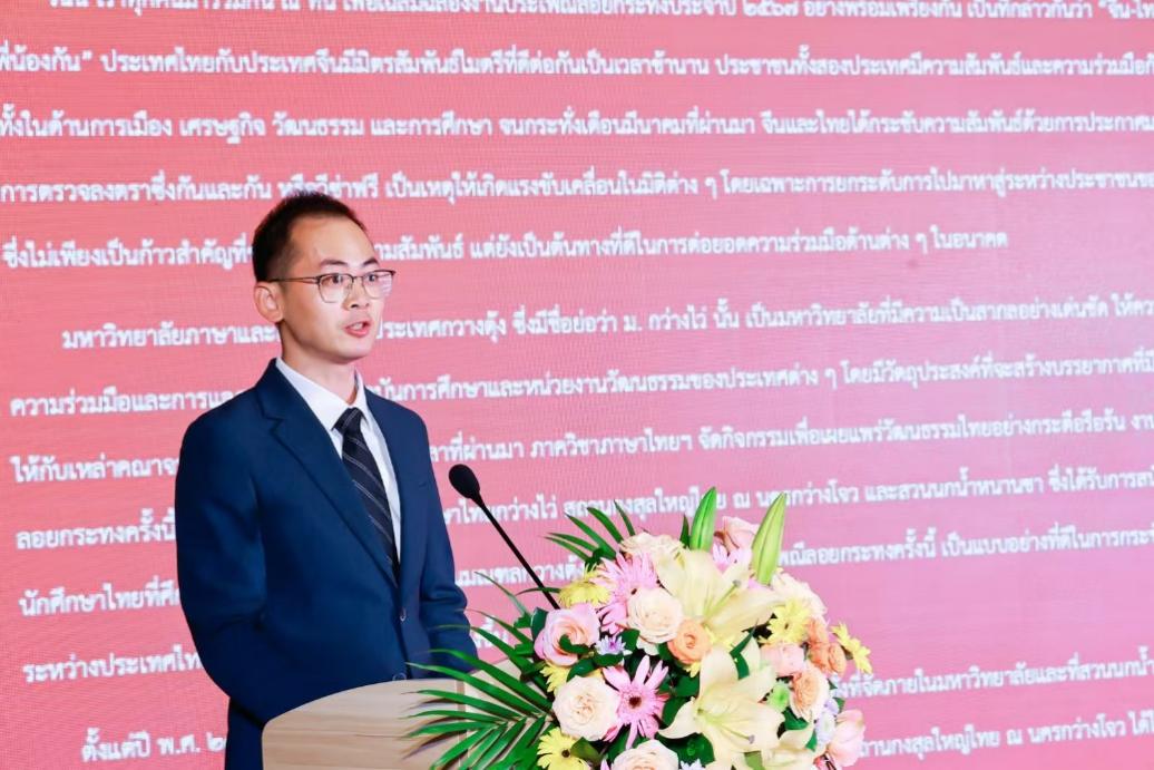本网讯 11月16日,由我校东南亚学院、泰国驻广州总领事馆、广州南沙水鸟世界生态园联合举办的2024年“赓续文化交流,传递佳节快乐”水灯节活动在广州南沙水鸟世界生态园举行。南沙区人大常委会副主任冷瑞华、南沙区文化广电旅游体育局局长鲁辉、泰国驻广州总领馆代总领事常佩瑶、泰国投资促进委员会广州办事处主任查奴鹏·努红、商务领事查娜·瓦奇拉斯塔萨、南沙区委外办综合科科长徐章俊等领导莅临活动现场。我校国际交流合作部与东南亚学院相关领导,以及学院各系师生参加了此次盛会。本次活动还吸引了来自我校、中山大学、暨南大学的近百名在粤泰国留学生及其他国家留学生踊跃参与。