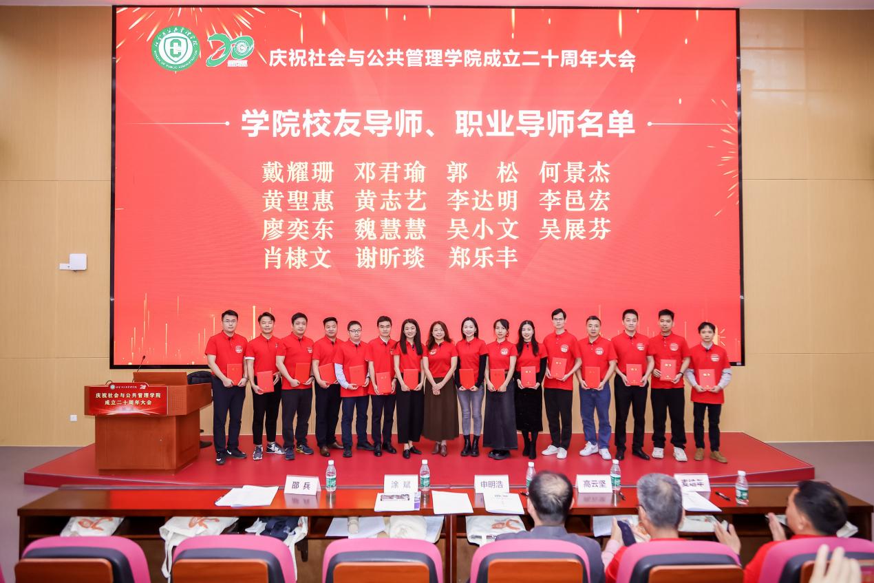 涂斌为15名校友颁发校友导师和职业导师聘书,为公共管理学院在读研究生链接校友资源,增添各行各业校友导师、职业导师力量,共同培育理论与实践双强的高层次应用型人才。