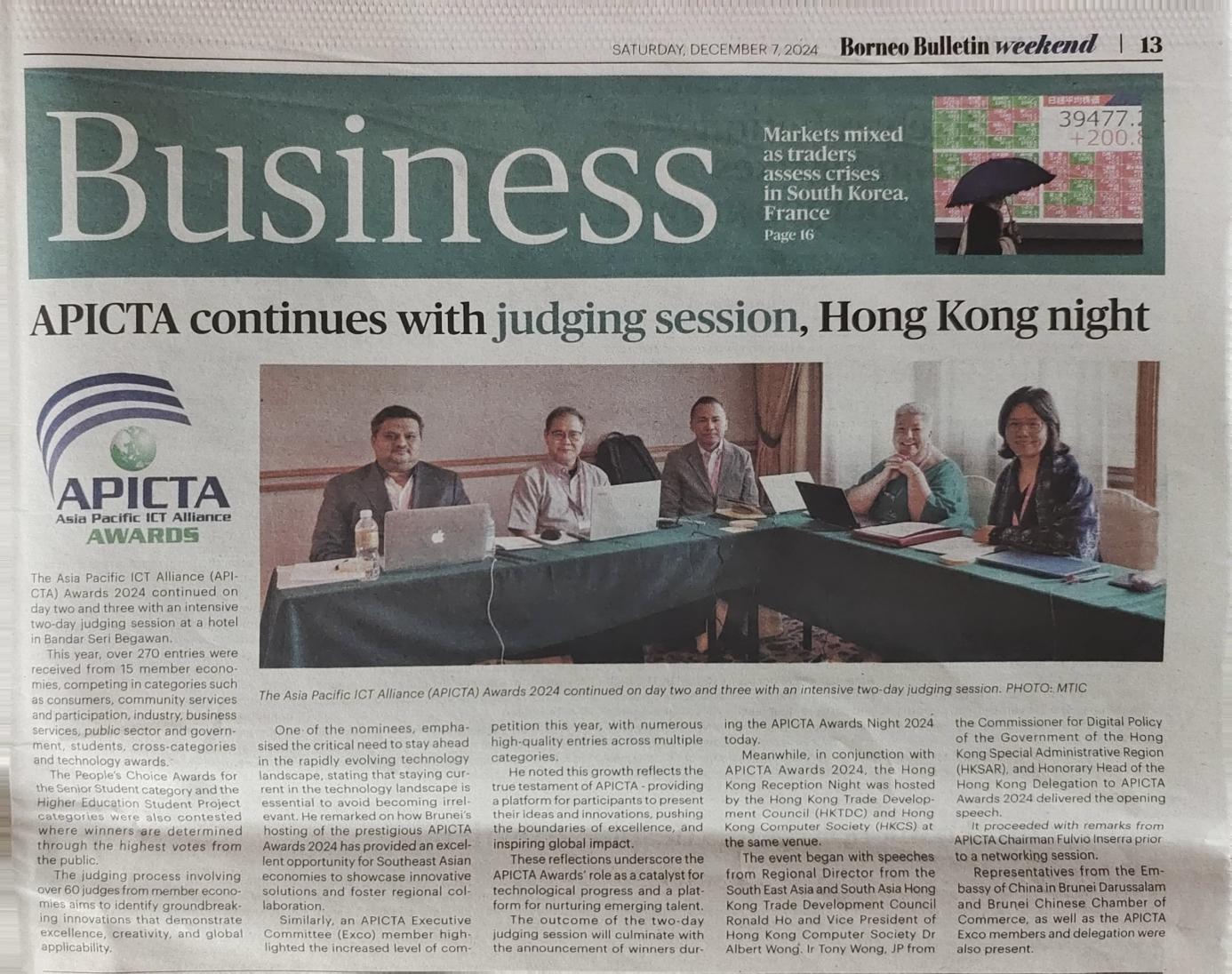 文莱主流报纸《婆罗州公报》的报道(右一为丘心颖)