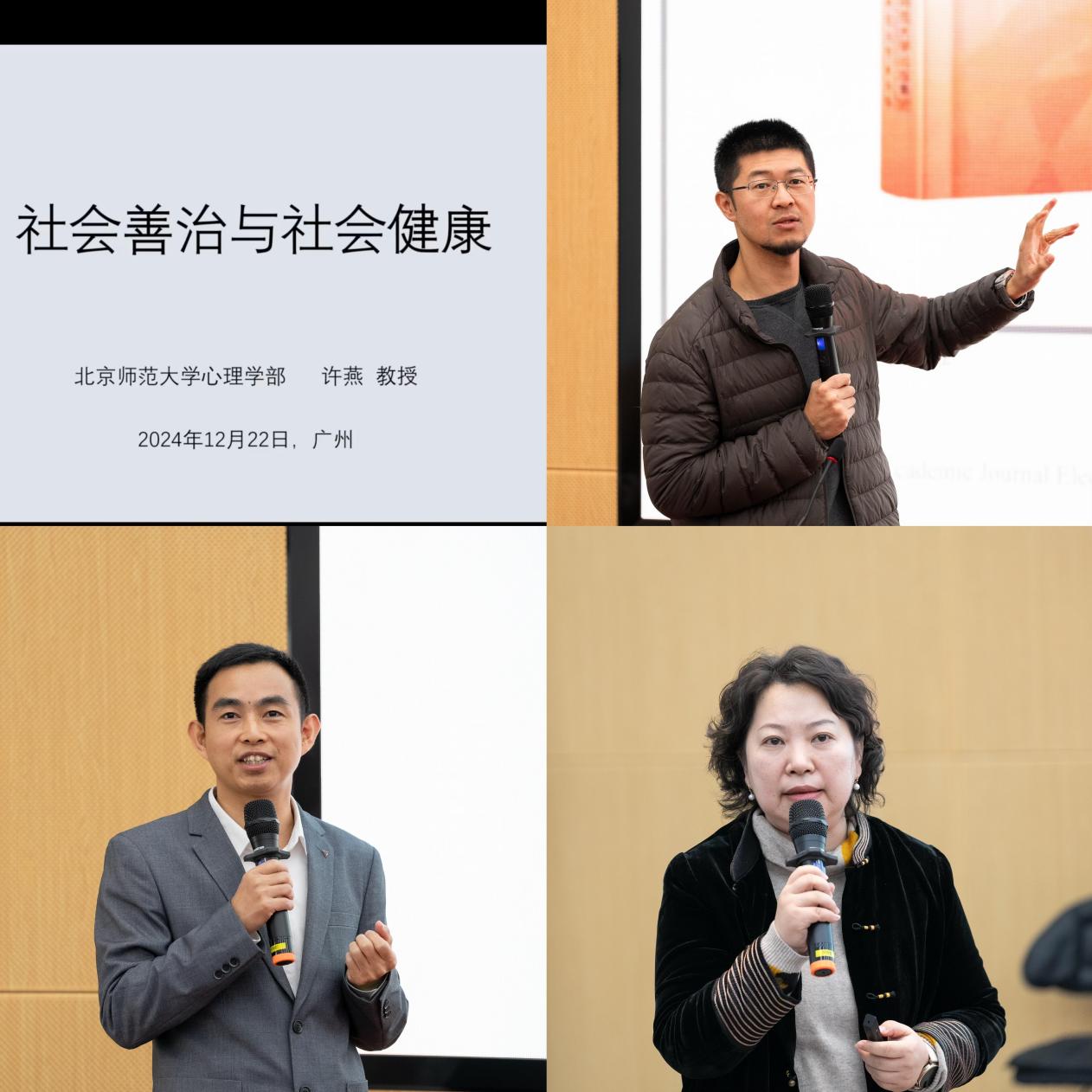 北京师范大学许燕教授、中山大学张书维教授、广东警官学院杨俊峰教授和武警广东总队医院王晓丽主任医师通过线上与线下方式分别以《社会善治与社会健康》《从“社会治理心理学”到“行为治理”:公共治理新模式的探索》《社会综合治理创新的导向、经验与对策》和《青少年非自杀性自伤行为(NSSI)的发病与维持机制及其应对策略》为题作特邀报告。