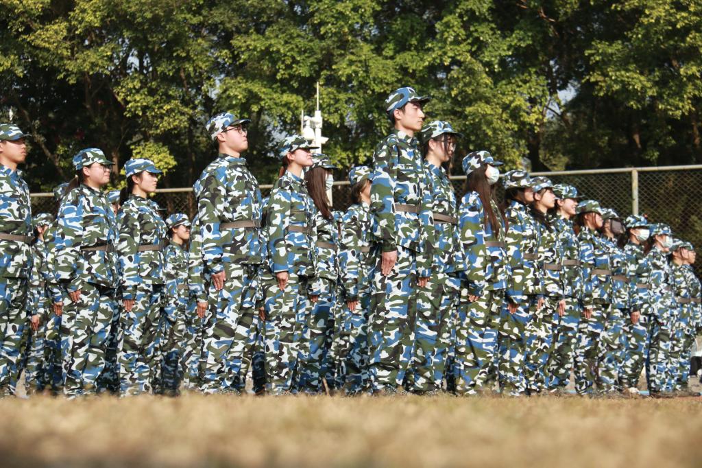 在体育场上,同学们嘹亮的呼号响彻操场,此起彼伏的回声也振奋人心;在校道上,《强军战歌》《团结就是力量》《打靶归来》等军歌被一遍遍传唱,磅礴的力量无坚不摧,似乎能穿透钢铁壁垒。艺术学院的刘同学表示:“每次和大家一起唱军歌时心情都特别澎湃,脑海里浮现出先辈们为我们冲锋陷阵、赴汤蹈火的情景,所以想要用更加铿锵有力的气势唱出来。”肉体展现的力量感与精神之魄力在军旅中相辅相成,点点星火逐渐汇聚成一团炙热的火焰。“大家都在朝一个方向呐喊,那种凝聚力让人振奋!”会计学院的蔡同学激动地说道。