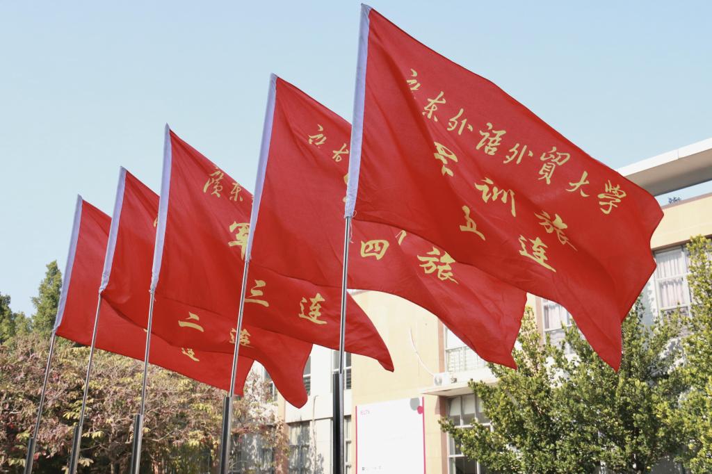 “前不露肘,后不露手,上踢一线,下砸一片。”伴随着教官的口令,国旗班的同学们全神贯注地练习着齐步走。作为整个新生军训队伍的“门面担当”,国旗班的训练要求更加严格。队列行进时,要求身体绷直,手脚的移动轨迹保持在同一条直线上,踢腿时脚离地面的高度也比正常行走要高得多,这给同学们带来了很大的挑战。“训练的第二天我的脚底就起了水泡,”新闻学院的刘同学说,“不过在加入国旗班时,我就做好了磨砺自己的准备,逐渐适应和调整自己的心态,开始享受训练的过程。”国旗班的标兵学员彭同学也表示,整个队伍要做到整齐划一的确困难重重,只能通过大量的练习不断磨合,调整彼此的步幅、步频。“经常要定腿十几分钟,一个摆臂的动作会练习一节课。”艰苦的训练磨砺了同学们的意志,每个人都对自己严格要求。坚持不懈的练习迎来丰收的硕果,从最初的参差不齐,到如今全班步伐一致,仿佛彼此之间有一条无形的纽带,将他们紧紧相连。他们整齐划一的脚步声仿佛巨人在前行,带着一种震撼人心的力量。